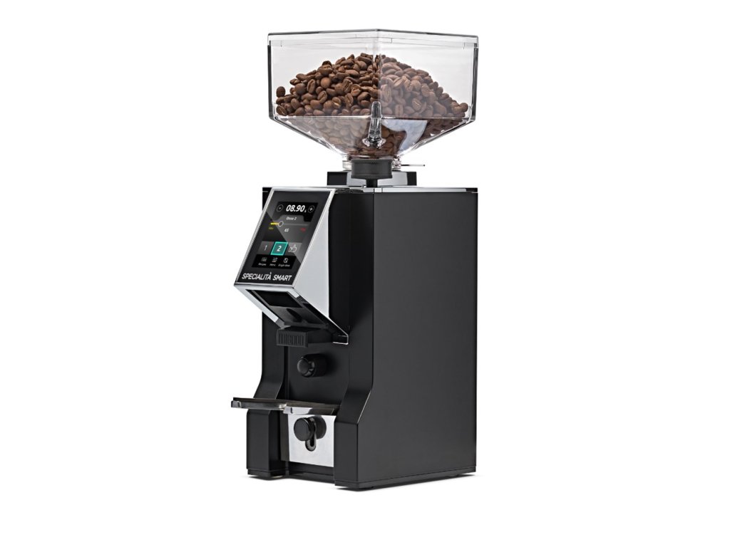 Úplne nová EUREKA SPECIALITA SMART! Jednou z jej kľúčových vlastností je Burrs' Distance Detection System. Čo to teda je zjednodušene?: Na displeji je v reálnom čase zobrazený rozostup mlecích kameňov od seba. Takže počas nastavenia hrúbky mletia už nepozeráte na otočný volič ale na displej a nastavujete hrúbku podľa hodnôt na displeji. BWT ten displej je famózny a nádherný. Okrem toho má SPECIALITA SMART novú naozajskú vidličku - držiak na portafilter a mnoho ďalších vylepšení.
